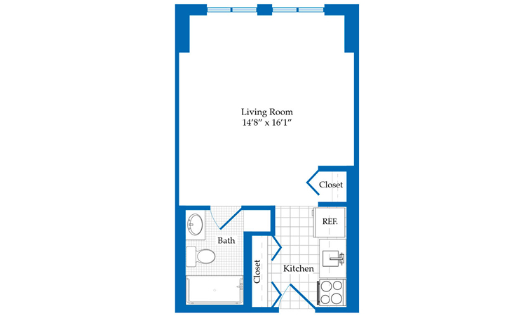 This 397 sq. ft. studio includes one bath and an open living area designed for comfort and convenience.